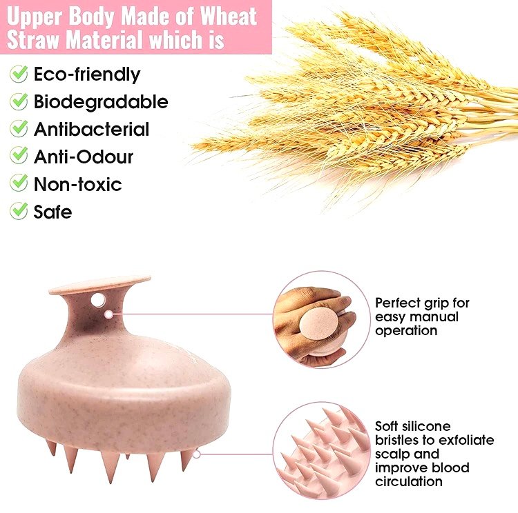 Made from sustainable wheat straw material, this ergonomic brush fits perfectly in your palm and features soft, flexible bristles that glide through all hair types. Ideal for use in the shower or during a dry scalp massage, it helps promote a fresh, clean-feeling scalp without harsh pressure or scratching.